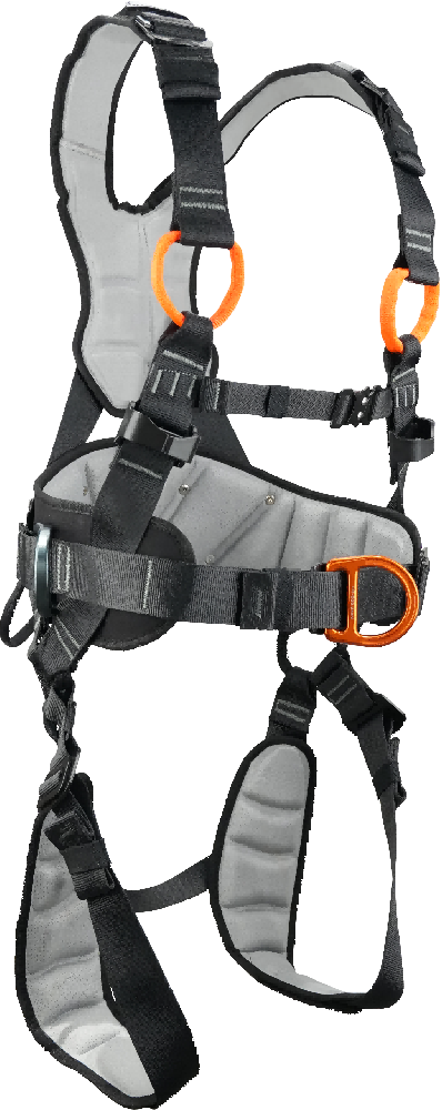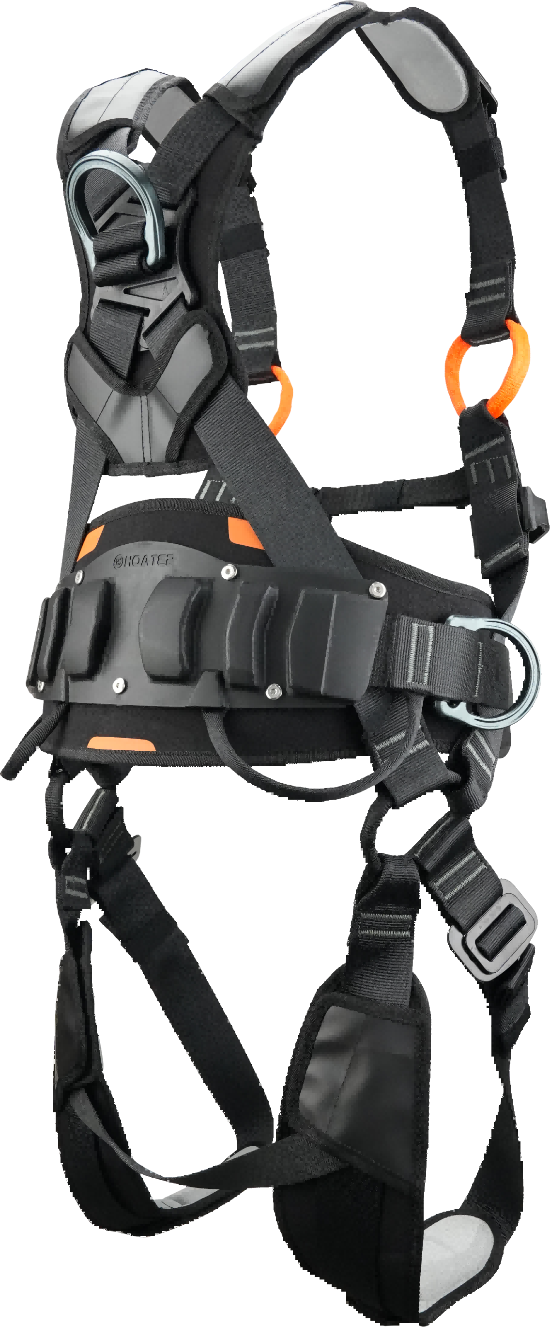 这款高性能风电作业安全带专为风电塔筒内外作业环境设计,旨在在高空作业中为您提供卓越的安全性、舒适性与操作便捷性。背部、腰部与腿部区域均使用全新热压成型柔软泡沫衬垫,结合高透气网状织物结构,在长时间穿戴及频繁攀爬过程中依然保持干爽与舒适 ;肩部与腿部采用护具可拆卸 . 腰部金属连接点采用创新的可折叠结构,在不使用时可自然收拢,防止意外挂碰。腰后配备两个高强度涤纶 工具环,每个可承重 2kg,便于随身携带工具及附件。