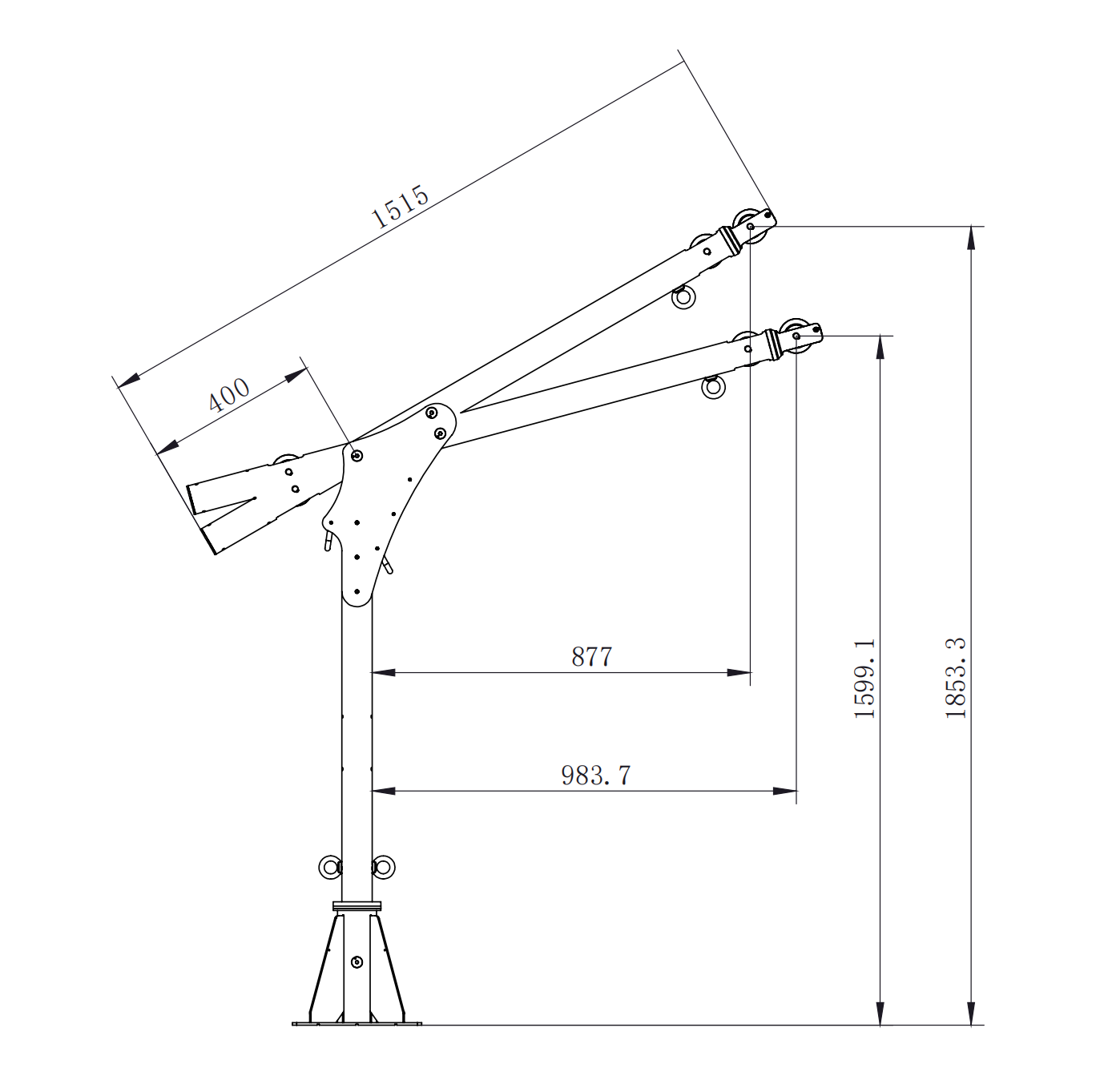 主要部件为:吊臂、桅杆、壁挂式安装底座,不包含绞盘及速差器。